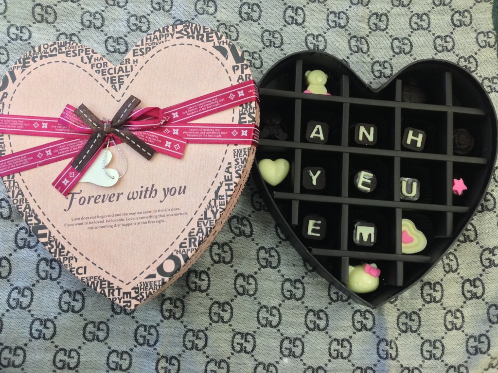 Sự đặc biệt sếp sau hộp socola trái tim có cánh là hộp socola trái tim hồng "Forever with you" dịch là "Mãi mãi ở bên em". Hộp socola trái tim trên nền hồng, được thắt nơ kiểu cách thể hiện một tình yêu ấm áp và đầy sự lãng mạn. Bên trong là những viên socola ngọt ngào với dòng chữ "Anh Yêu Em" nói lên tình yêu sâu sắc của chàng dành cho một nửa trái tim yêu thương của mình, bên cạnh đó là những viên socola trang trí rất đáng yêu làm tăng lên vẻ đẹp, sự sang trọng của hộp socola. Đứng trong TOP 3, một trong những hộp socola đáng để dành tặng cho nàng nhất, socola hộp trái tim hồng "Forever with you" sẽ là mòn quà mà người ấy sẽ cảm thấy thật tuyệt vời, vui nhất, cảm động nhất khi được chàng dành tặng, nàng sẽ ôm chặt bạn và đáp trả lại bằng cái ôm xiết chặt, nụ hôn ngọt ngào cùng những lời nói yêu thương!!!